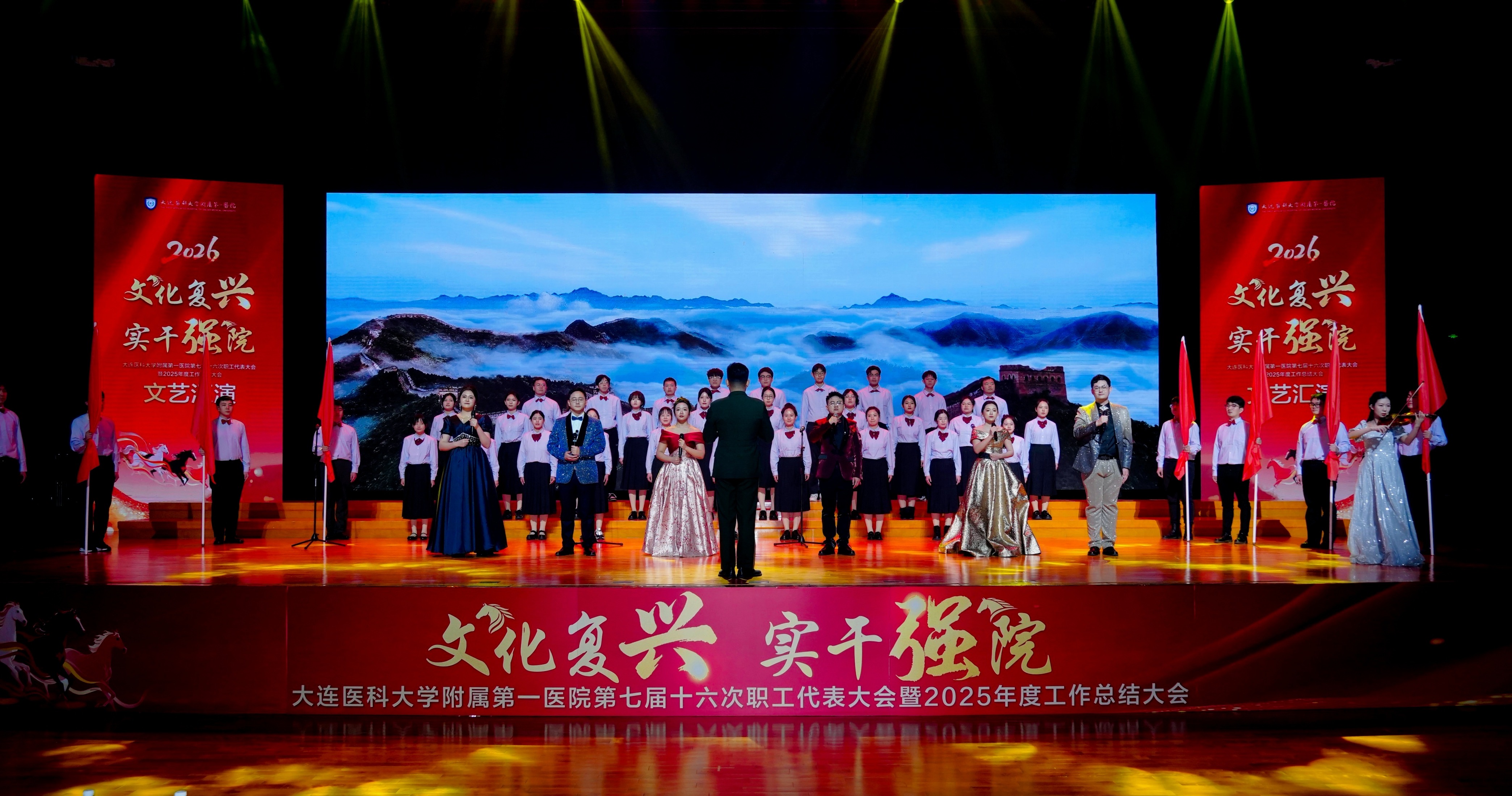 在热烈的掌声中,大医一院第七届十六次职工代表大会暨2025年度工作总结大会圆满落下帷幕。随后,文艺汇演在舞蹈《春暖附一》中拉开帷幕。院领导班子集体登台演唱《真心英雄》,以铿锵昂扬的歌声致敬每一位在平凡岗位上默默奉献的医务工作者,展现了医院上下同心、共筑梦想的凝聚力和守护健康的坚实担当。