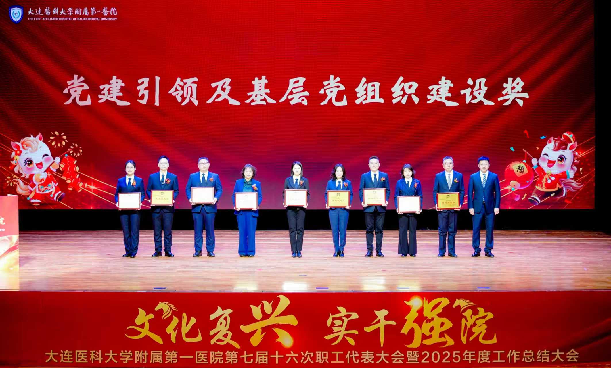 李海洋指出,本次会议不仅是总结成绩、表彰先进的总结会,更是凝聚共识、激发干劲的动员会和统一思想、部署任务的部署会。必须立足更高站位、更宽视野、更实举措,审视过去、规划未来,全力推动医院高质量发展。过去一年,附属第一医院始终把党的政治建设摆在首位,主动融入健康辽宁建设和大连经济社会发展大局,统筹推进医疗、教学、科研、管理工作,医疗服务能力持续提升,人才培养质量全面提高,中西医协同并进等方面取得扎实成效。他强调,全院上下要坚持高质量党建引领,主动服务健康中国战略;发挥自身优势,打造百姓信赖的“家门口”好医院;强化医教研协同,深化校院联动,形成发展合力,共同开创医院高质量发展新局面,确保“十五五”开好局、起好步,以“一马当先”的担当和“马不停蹄”的干劲,为健康辽宁、健康大连建设贡献更大力量。大医一院副院长杨超宣读了2025年度医院先进集体和个人名单并主持颁奖仪式。院领导班子上台为先进集体和个人颁奖。大医一院副院长李艳霞主持大会。